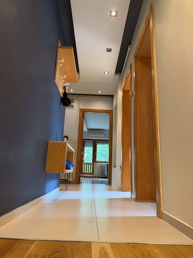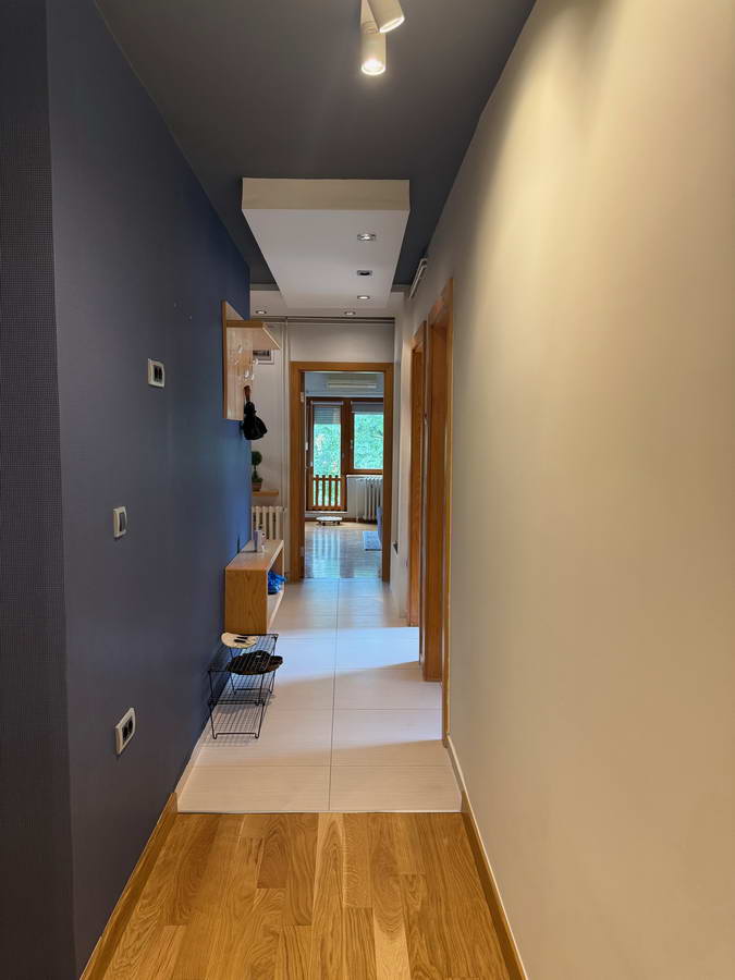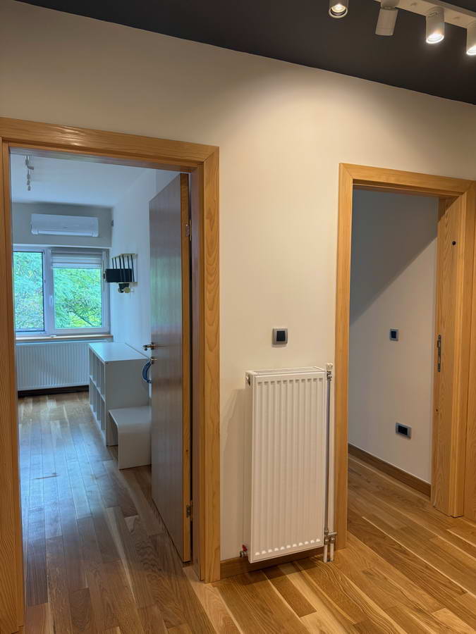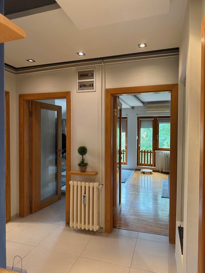 Mala Amerika – Četvoroiposoban stan u mirnom delu Male Amerike površine 100m2, okružen zelenilom i orijentisan na sve četiri strane sveta. Sve prostorije imaju prirodno provetravanje. Nalazi se na drugom spratu i zauzima celu etažu. To je ujedno i poslednji sprat. Sve instalacije u zgradi su nove. Stan ima dva kupatila, dnevnu zonu koja se sastoji od kuhinje, trpezarije i dnevne sobe, tri spavaće sobe i jednu radnu sobu. Uz stan idu tri pripadajuća podruma i postoji mogućnost kupovine garaže ispred zgrade. Stan je kompletno renoviran, prodaje se sa nameštajem koji je pravljen po meri od prirodnih materijala, kao i sva unutrašnja i spoljašnja stolarija koje su od drveta.