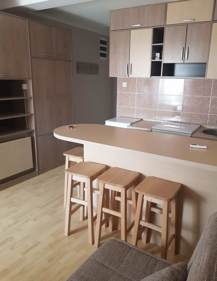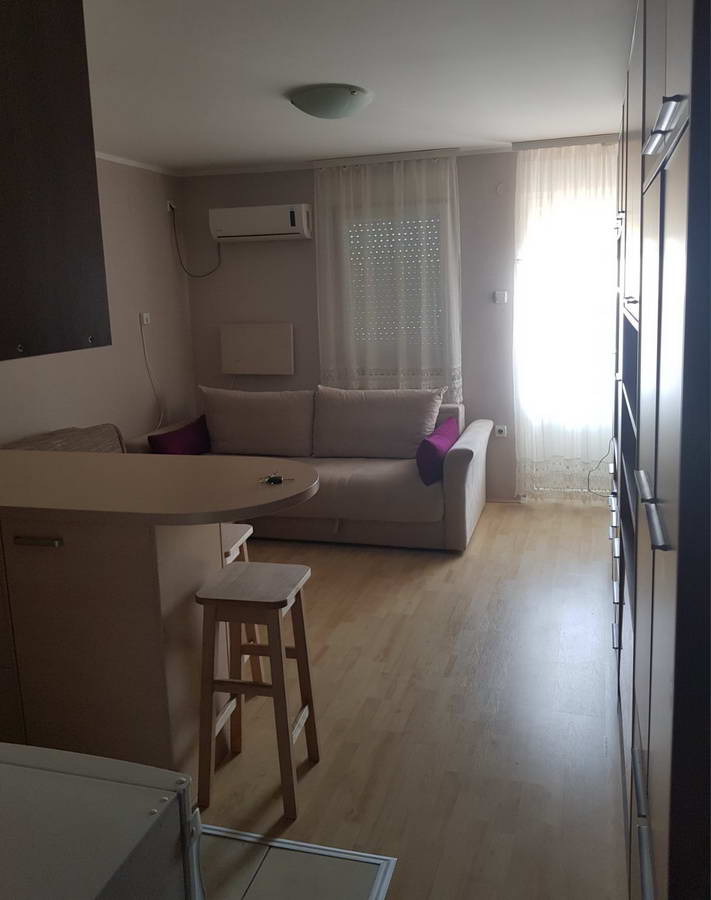 Putnikovo – garsonjera u novijoj zgradi površine 28m2 na prvom spratu zgrade koja se sastoji od prizemlja, sprata i potkrovlja. Grejanje na klimu i norveške radijatore. Sigurnosna vrata, laminat, interfon. Stan nije etažiran, te nije moguća kupovina putem stambenog kredita.