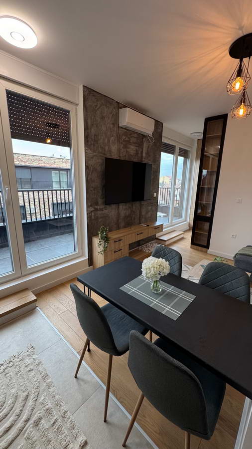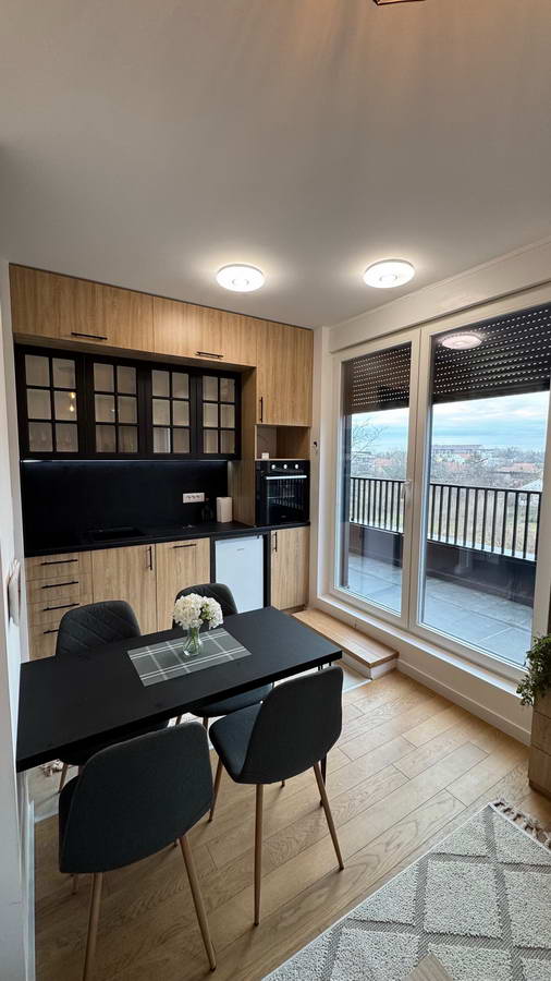 Lesnina – NOVOGRADNJA – Garsonjera u neposrednoj blizini Žitnog trga površine 35m2 (24m2 stambenog prostora i 11m2 terasa duž celog stana). Na drugom i poslednjem spratu u zgradi s liftom. Podno grejanje. Rehau stolarija sa trostrukim staklima i elektropomičnim roletnama. Klima. Videonadzor. Kompletno opremljena. Kvalitetna gradnja. Energetski efikasna zgrada. Cena je na mesečnom nivou – 300e + komunalije uz obavezan depozit u vrednosti jedne mesečne kirije.