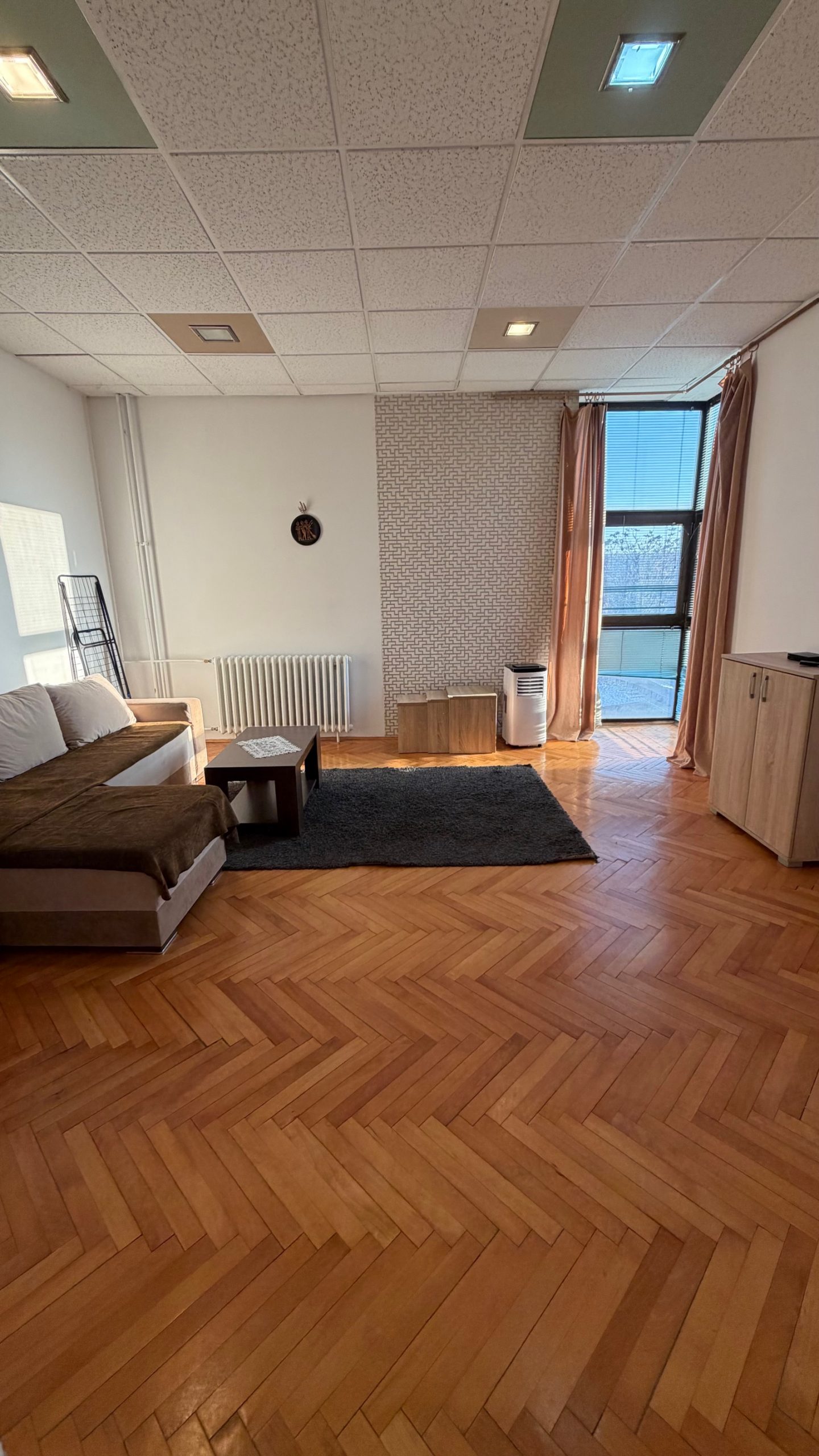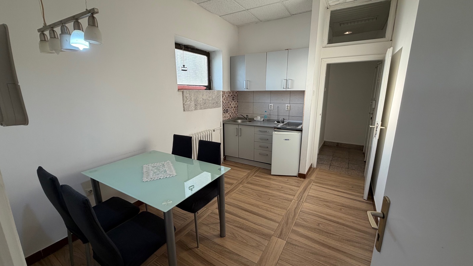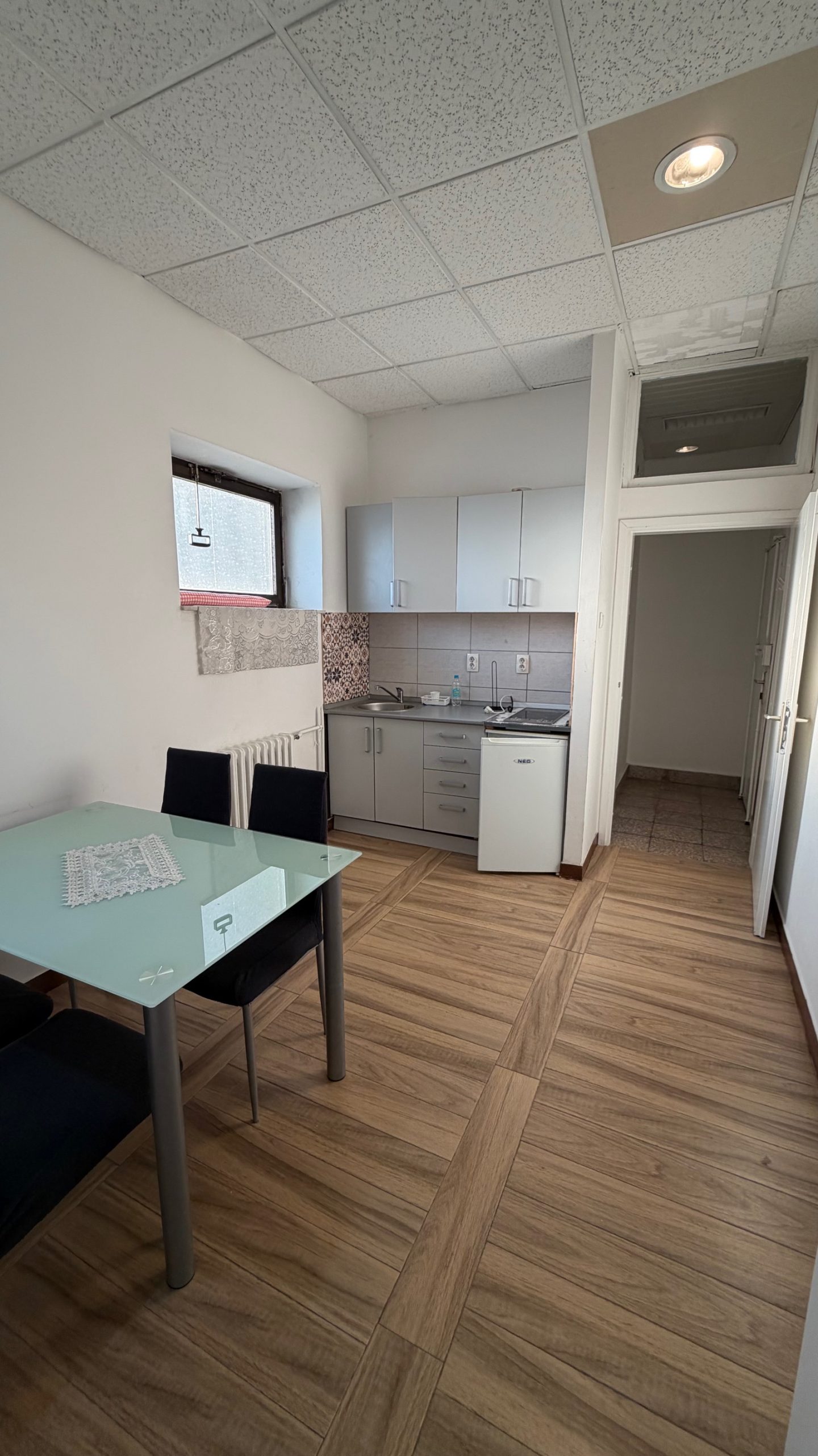 Žitni Trg – jednosoban stan (uknjižen kao poslovni prostor) u maloj varoši povrsine 40m2 na drugom od tri sprata u stambenoj zgradi sa liftom. Centralno grejanje, klima, bez terase. Nije moguća kupovina putem stambenog kredita, jer je uknjižen kao poslovni proctor.