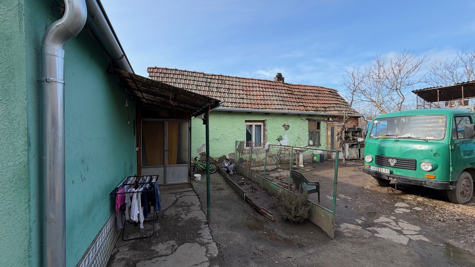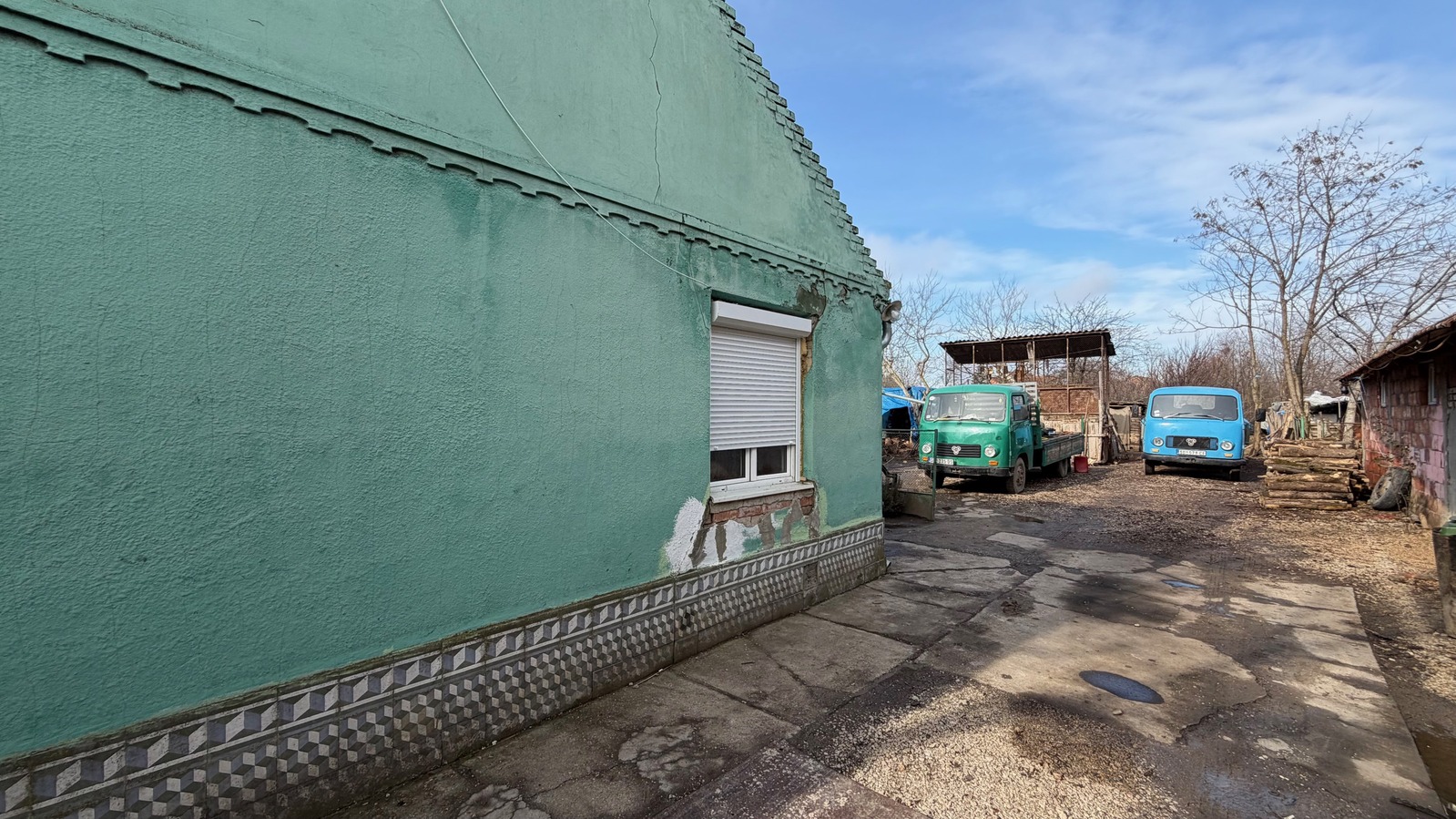 Aradac – četvorosobna kuća površine oko 100m2 (uknjiženo 75m2) na placu površine 7,4 ara sa kolskim ulazom. Monofazna struja, uknjižena 1/1.