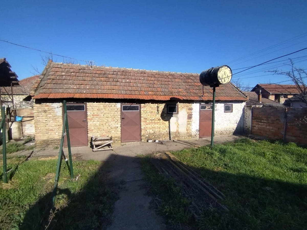 Melenci – dvosobna kuća površine 93m2 + garaža površine 21m2 i pomoćne prostorije na placu površine 8,37 ara sa kolskim ulazom. Trofazna struja, plin, septička jama, mešovita gradnja. Uknjižena. Moguća kupovina putem stambenog kredita.