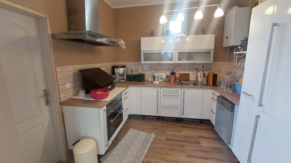 Stajićevo – Petosobna spratna kuća površine 214m2 na placu površine 7.13 ara sa kolskim ulazom. Trofazna struja, centralno grejanje na plin, laminat, PVC stolarija. Uknjižena 1/1. Prizemlje je skroz renovirano, dok su na spratu potrebna veća ulaganja. Moguća kupovina putem stambenog kredita.