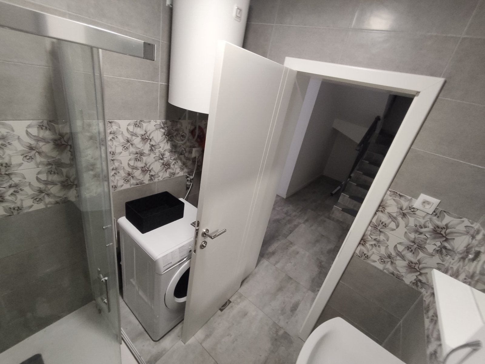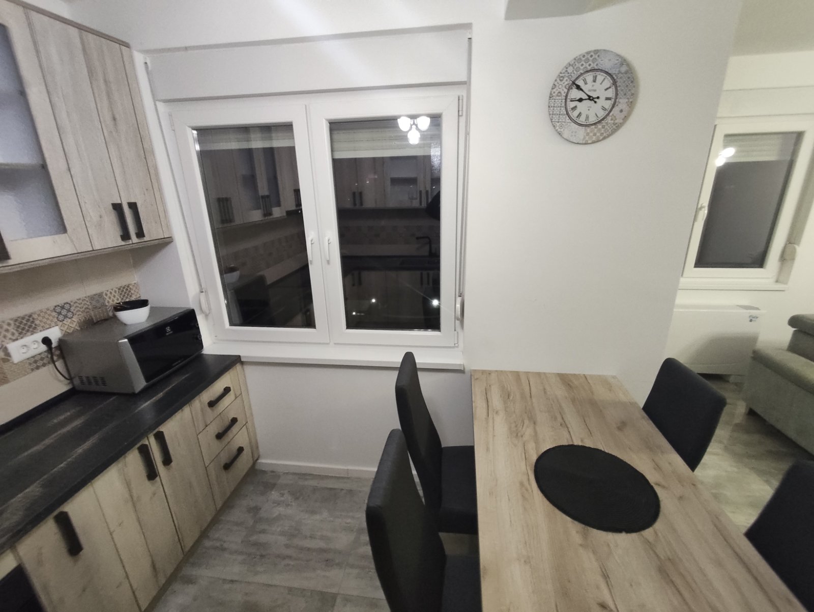 Stan je opremljen nameštajem i tehnikom, dva TV-a, mašina za pranje i sušenje veša, u kuhinji – šporet, frižider sa zamrzivačem, aspirator.